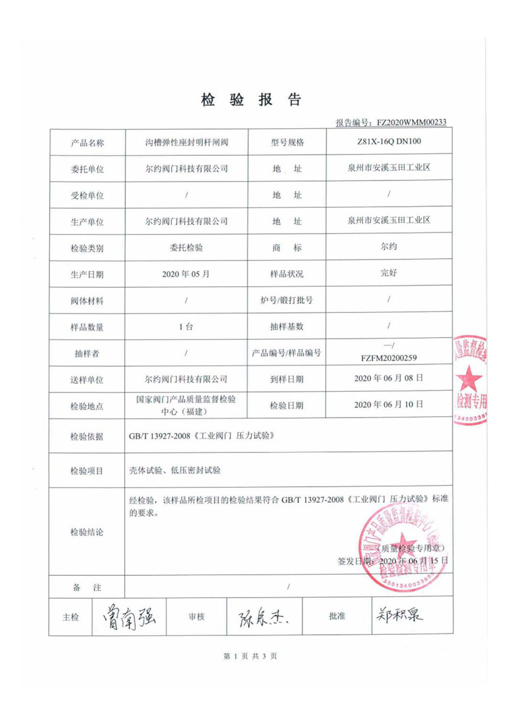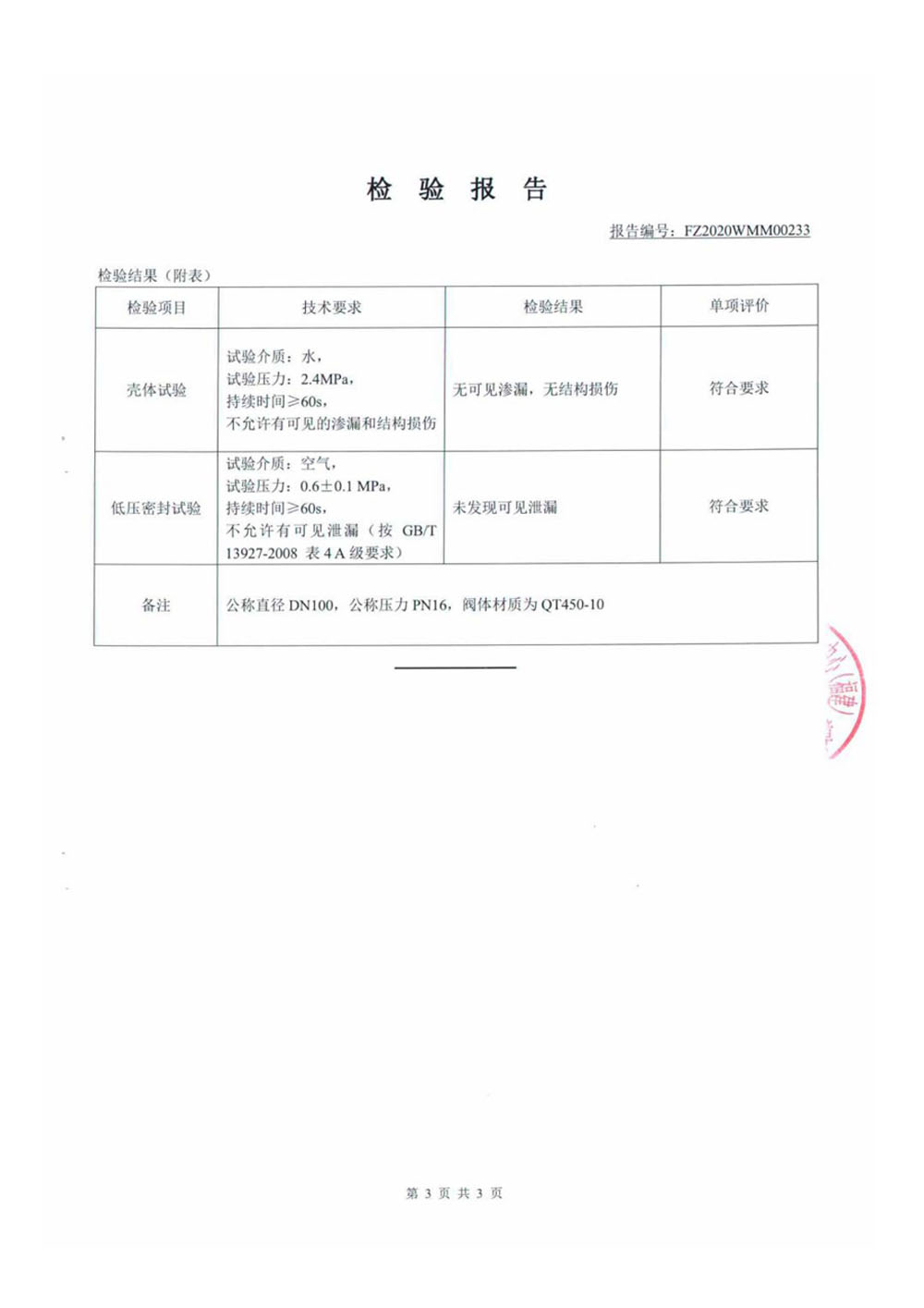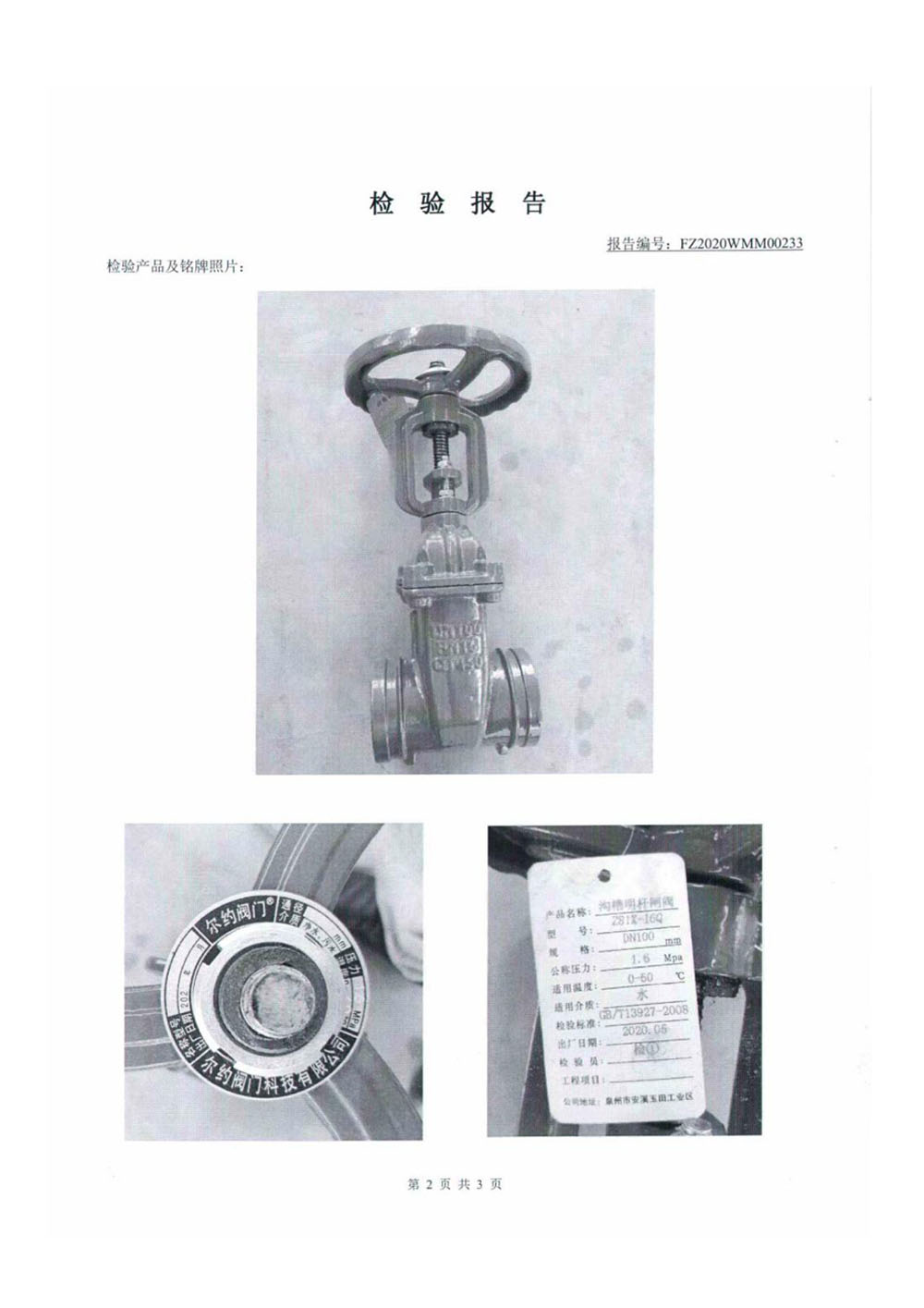 蝶閥檢驗報告