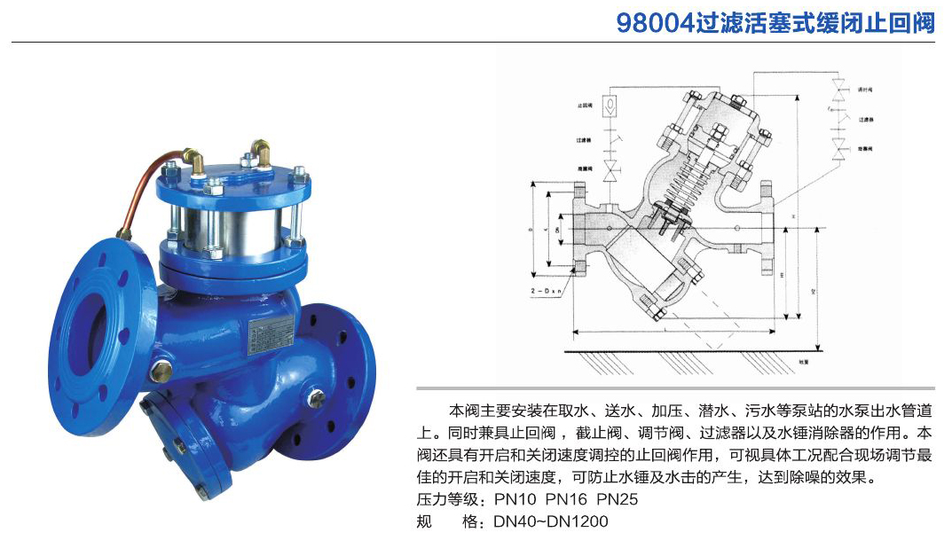 過濾活塞式遙控浮球閥/緩閉止回閥